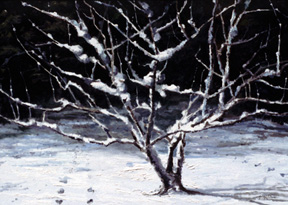 North Carolina artist J. Chris Wilson\‘s Landscape Painting Flowering Pear in the Snow see also "From Murphy to Manteo—An Artist\‘s Scenic Journey"